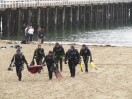 Santa Cruz Rough Water Open Water SwimJuly 28, 2012This is the third time I'm doing this annual swim, and the only open water ocean swim I've done. I've done many lake/reservoir swims but the ocean (Pacific) swims are different beasts, for one simple reason: the temperature. Today the water was a typical 58F, so I knew from past swims how that would feel. Last year I did a 5min practice swim just before race start to get used to the frigid waters, and that worked out a lot better. I didn't completely loose my breath and no thoughts about not completing the 1mile course entered my mind. They had computer problems with the registration, so we stood in line for a good 45minutes. Not a big deal. I got to talk to Rob and his girlfriend from robaquatics.com. He's an avid blogger about his open water adventures, and I encourage you to check out his web-site. He told me about his close encounter with a group of not so friendly seals. Pretty exciting stuff. I donned the neon green swim cap, indicating I was in the over-40 category, and joined the other 200 or so swimmers for the walk to the starting line at the other side of the pier. While waiting for the start signal, I noticed a guy suiting up in a full dress suit with shirt, tie, and nicely polished shoes. Definitely, a photo op, and I'm sure he'll end up on the front page of some newspaper article. When stumbling into the water and suffering through the first 5 mins of coldness, things actually becomes fairly comfortable, when the numbness sets in. I forgot to start my stopwatch, so I'll have to wait for the official results to see if I managed to beat my time from last year. | ||||||||||||||||||||||||||||||||||